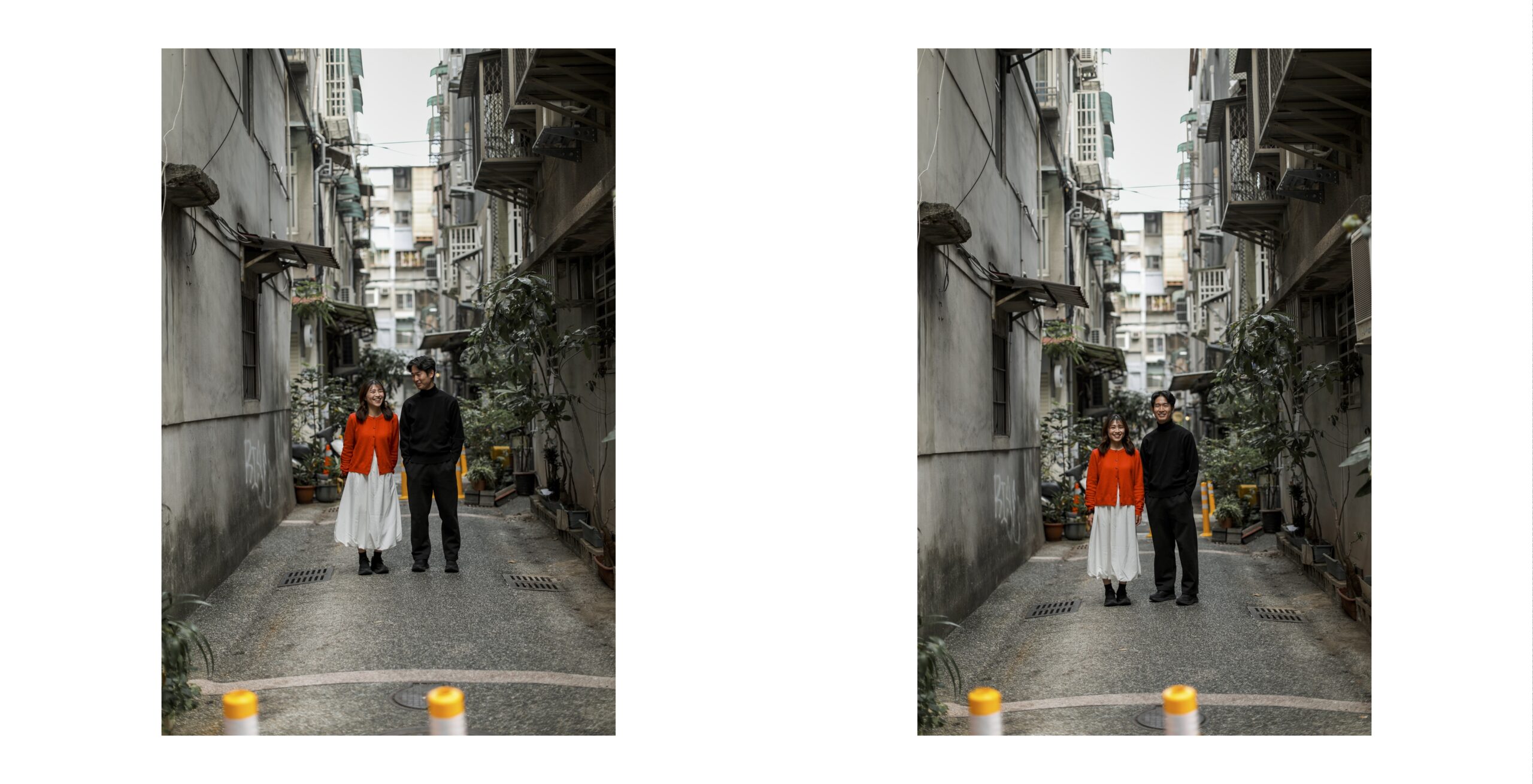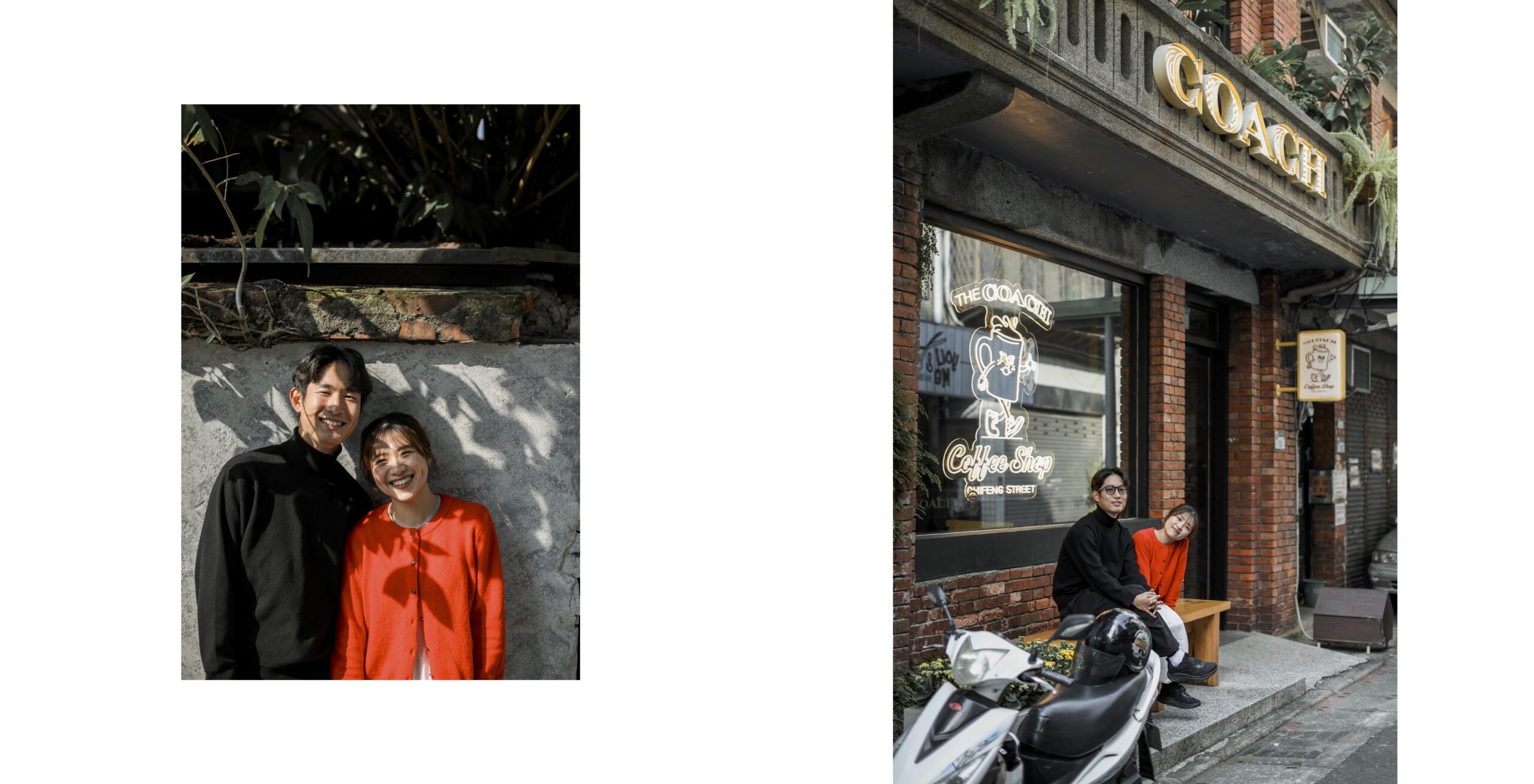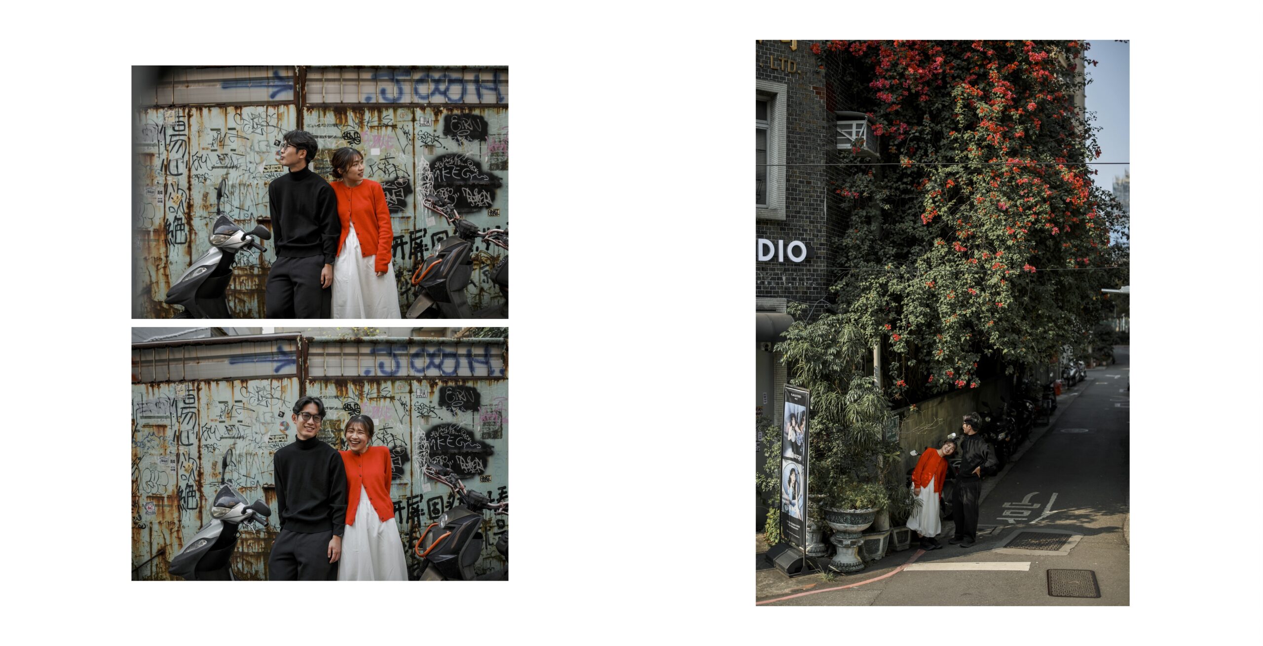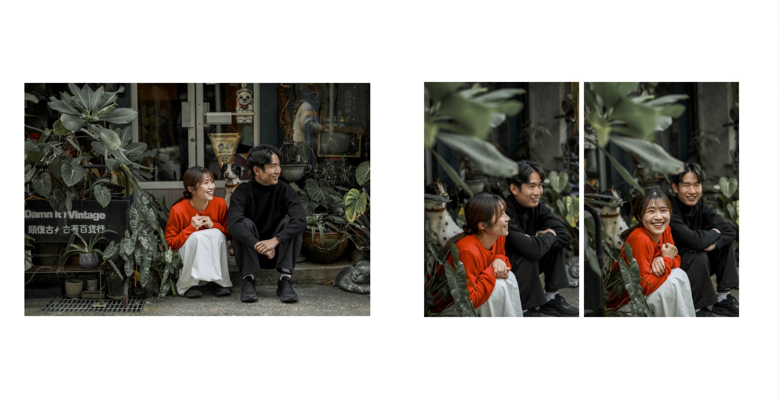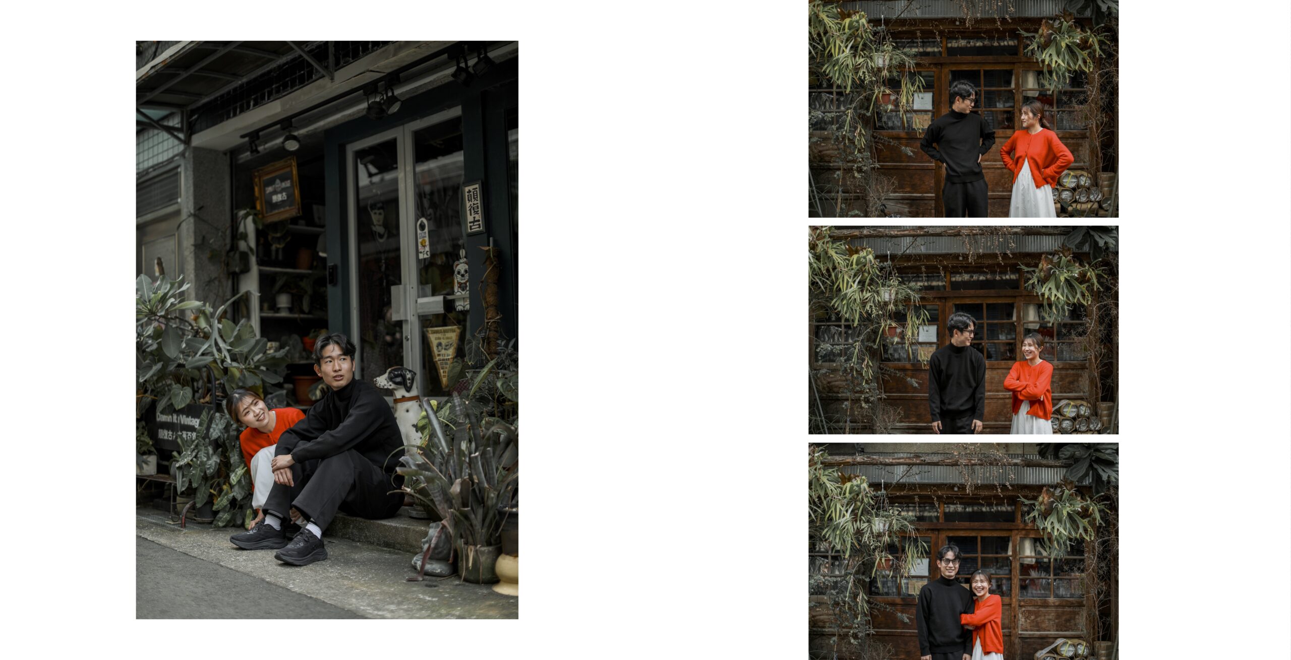 台湾観光の隙間時間に私服で気軽に撮れるカジュアルカップルフォト。人気スポットでの自然な笑顔をプロカメラマンが撮影。旅の思い出を素敵な写真に残せるギャラリー。